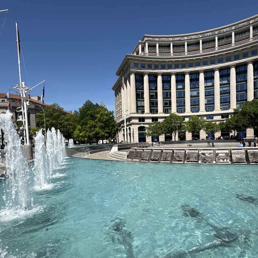 This real world escape room is the most unique escape room near the National Mall. It takes you on a clue-solving adventure to find clues, solve puzzles, and follow an immersive storyline. If you want to keep the experience a surprise, don't read this next bit - it contains some spoilers about where you'll go on our National Mall DC escape room adventure and what you'll see along the way. In Escapely's National Mall escape room, you're a top secret spy tasked with exposing a ring of double agents threatening to take down the agency. You'll start your search for clues at the National Gallery of Art’s Sculpture Garden. It's the perfect outdoor opportunity for some photo ops as you begin the game. Next, you'll head to the Dwight D. Eisenhower Memorial, an open air memorial with beautiful bronze statues and inspirational quotes. Another great spot to snap a pic! Your next stop is the The Trylon of Freedom pillar outside of the DC courthouse. The three sides of the monument represent the separation of the three powers in US government. Then the escape game takes you to Temperance Fountain right next to the National Archives. It was donated to the city when the temperance movement was discouraging alcohol consumption. The fountain offered a refreshing alternative beverage! Your final stop is the US Navy Memorial Plaza, commemorating those who have served. To close out your DC escape room experience, head to Freedom Plaza. The app even recommends the perfect place to grab a bite to eat while you complete your escape!